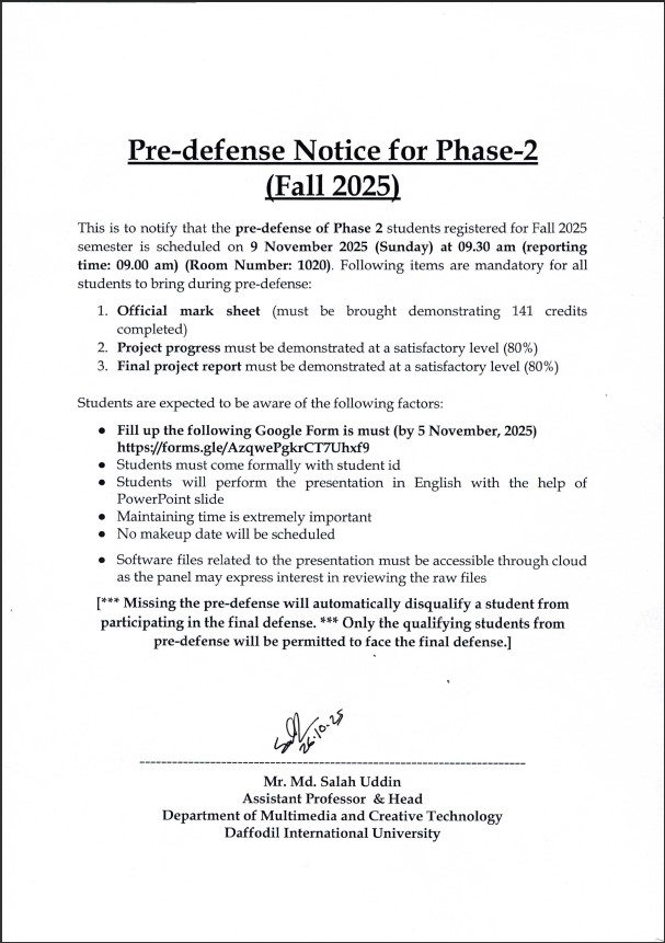 This is hereby notified that the students of MCT program of FSIT should receive the Registration Clearance of Fall’2025 semester by paying the 1st installment with previous dues (If any). Unless the installment is paid in time, no student will be allowed for the Registration. Late fee Tk 500/- will be applicable from September 17, 2025.